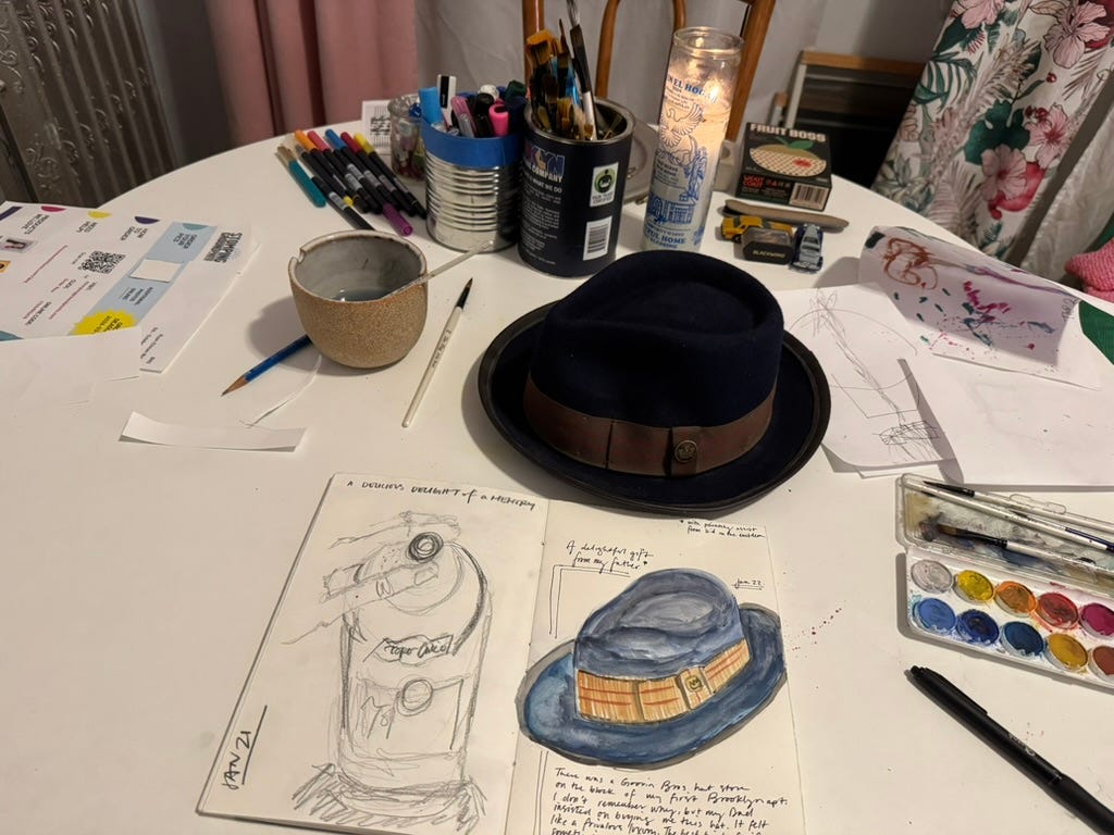 I love your drawing of the hat sooooo much. Hugs to you across the miles.